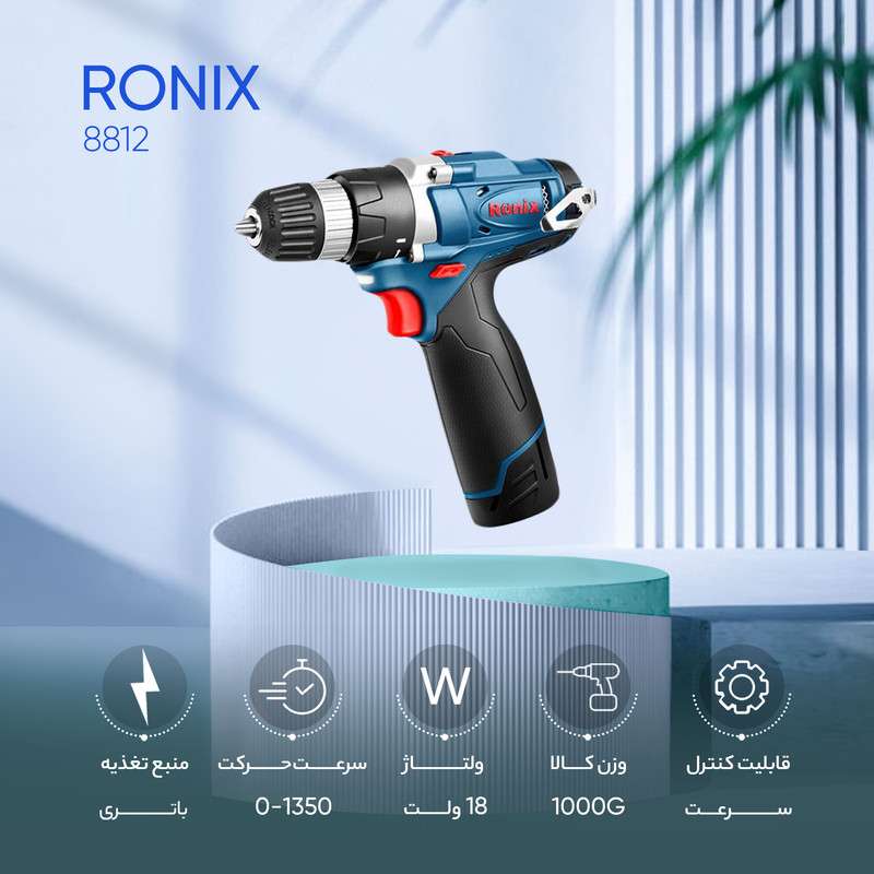 دریل پیچ گوشتی شارژی رونیکس مدل 8812، ابزاری قدرتمند، سبک و قابل حمل است که برای انجام انواع کارهای تعمیراتی و نصب مناسب میباشد. با طراحی ارگونومیک و باتری با عمر طولانی، این محصول راحتی و کارایی را همزمان فراهم میکند.