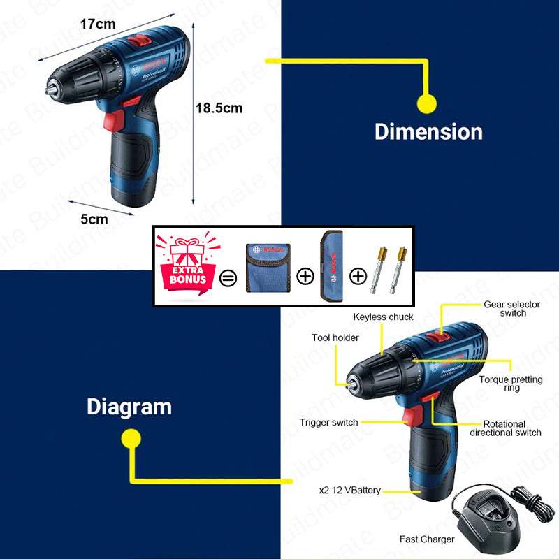 این مجموعه شامل دریل و پیچگوشتی شارژی بوش است که برای کارهای مختلف در پروژههای ساختمانی و تعمیراتی طراحی شده است. قدرت و دوام بالا، طراحی ارگونومیک و کاربری آسان از ویژگیهای برتر این محصول است.